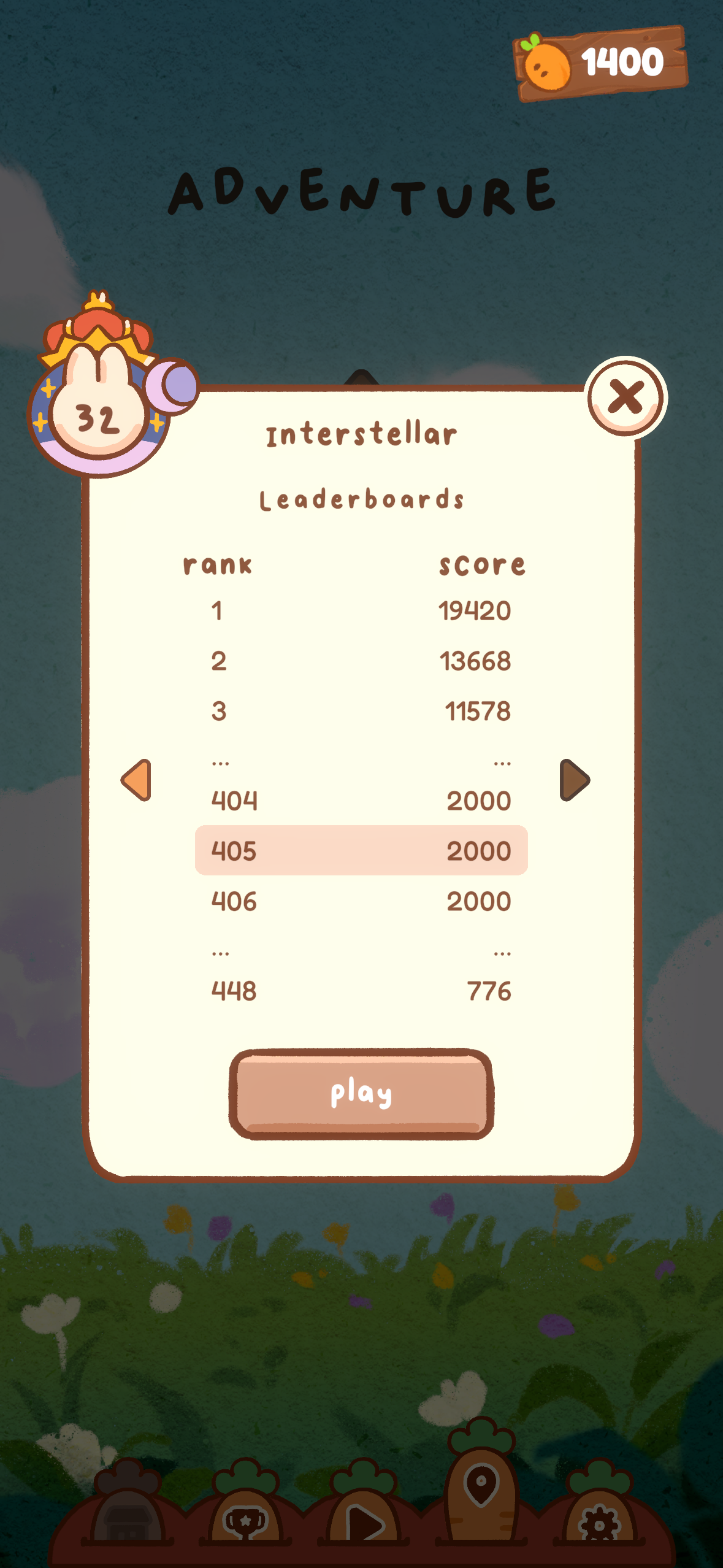 Inspired by daily games like Wordle and Connections, PPB's main twist on the genre was that I made 28 unique levels or puzzles with pre-arranged bunnies on the board and everyday players would all compete and play the same level, with the same RNG (randomness) and same set of bunnies. Some of the levels were carefully arranged to be in particular patterns, and some of them were more or less random with some pre-placed powerups. As opposed to a blank board, these levels meant players also needed to manage how best to deal with the existing bunnies on the board.