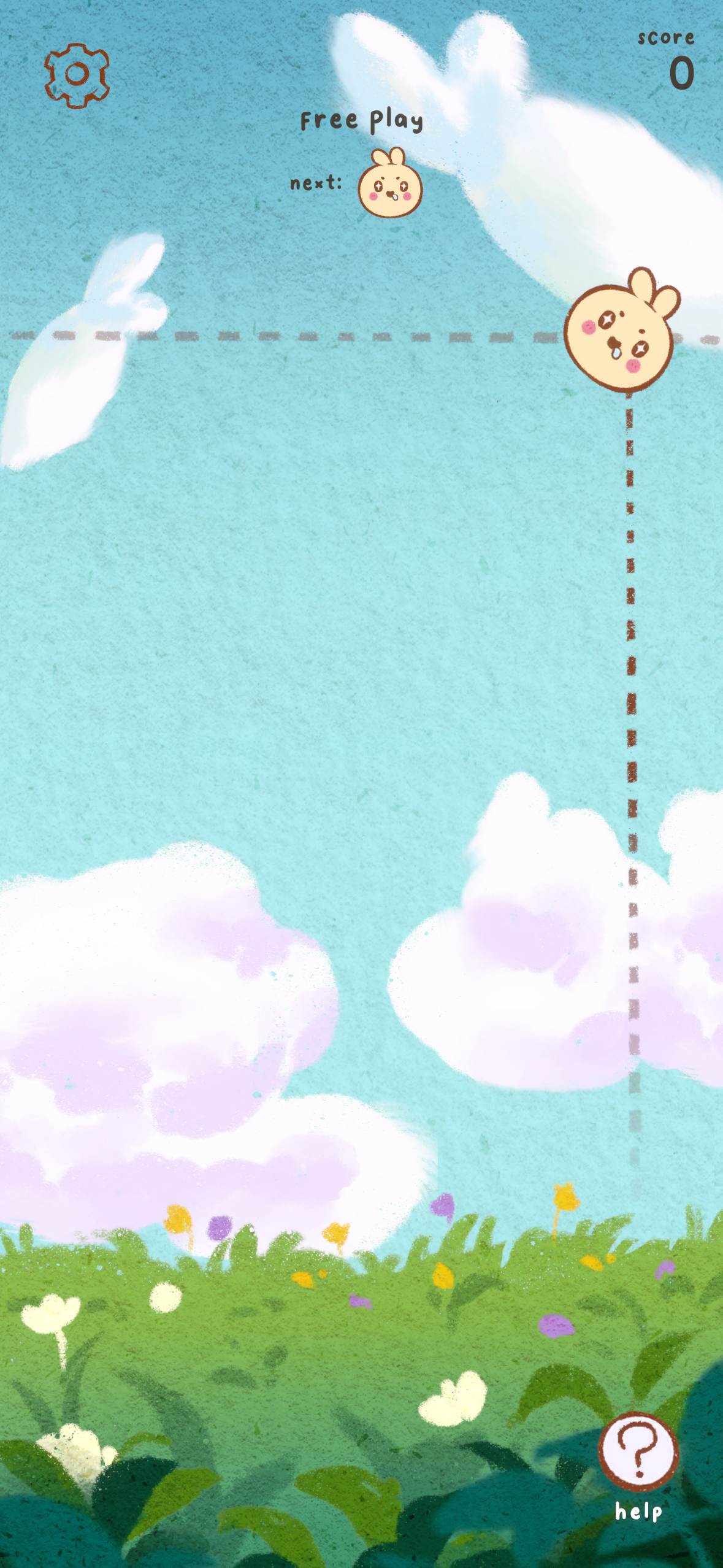 In PPB 1.0, there are 11 different bunnies that are progressively larger in size. The player is given a random smaller sized bunny to drop into the board. When two bunnies touch, they merge into a larger bunny and points are scored. When the bunnies overflow out the top of the board, the game is over. This is pretty much what defines the game known as "Suika".